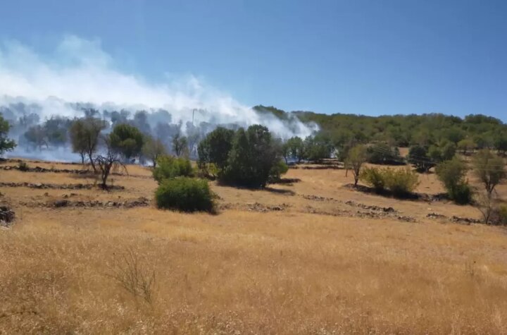 Elazığ'ın Uzuntarla köyünde açık alanda bulunan samanlar, bilinmeyen bir nedenle yangın çıktı. İtfaiye takımları...