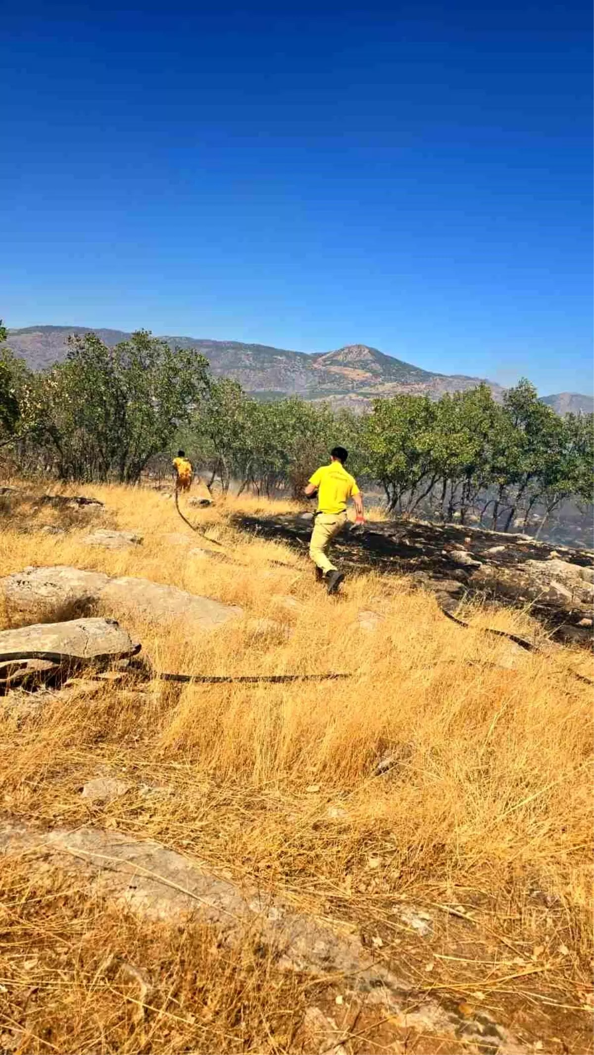 Diyarbakır'ın Dicle ilçesine bağlı Taşağıl Mahallesi'nde çıkan orman ve örtü yangını, itfaiye ve Orman...