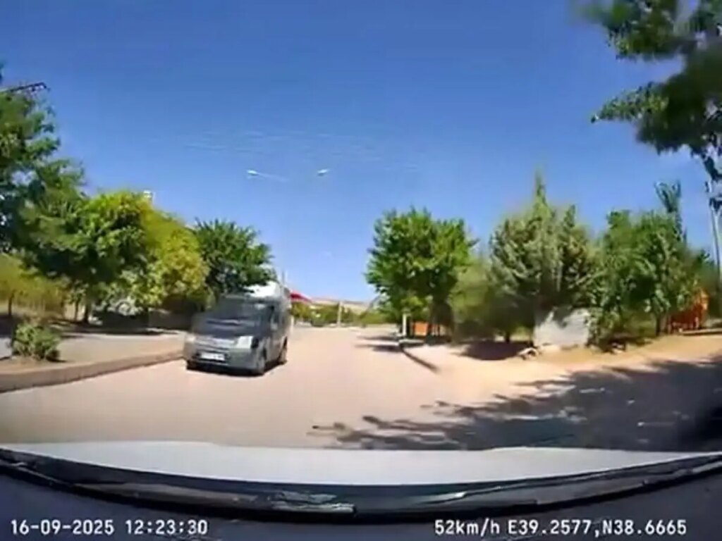 Elazığ’da aksi tarafta giden hafif ticari araç trafiği tehlikeye atarken, o anlar bir diğer aracın kamerasına yansıdı.