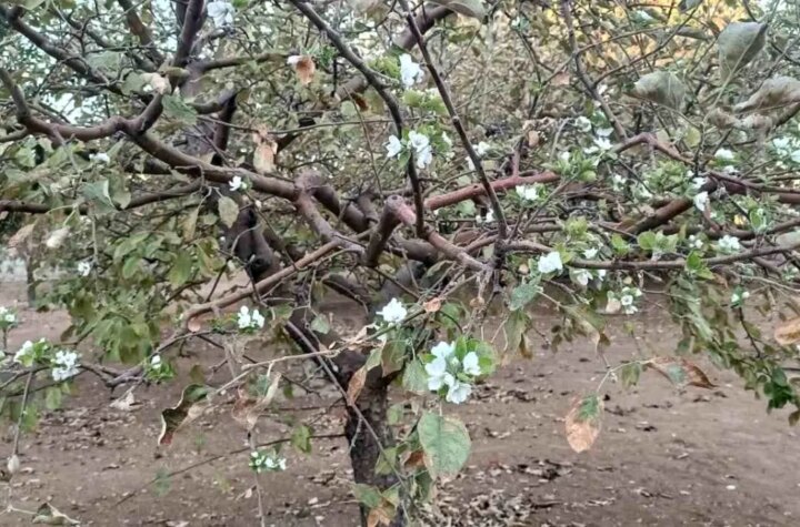 Elazığ'ın Hankendi beldesinde bir meyve ağacı, sonbahara karşın çiçek açtı. Uzmanlar, iklim değişikliğinin bu...