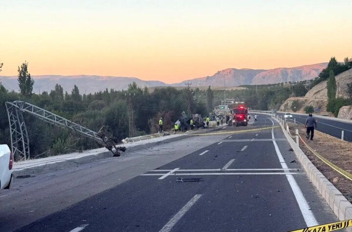 Malatya'nın Darende ilçesinde frenleri boşalan bir tır, yolcu otobüsüne çarparak dereye yuvarlandı ve alev...